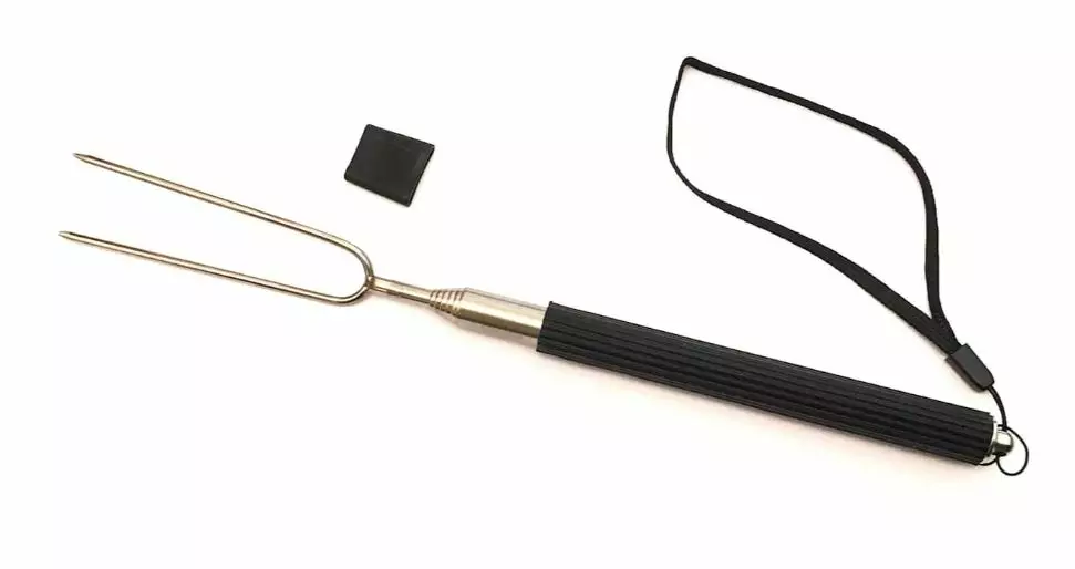 Teleskooppinen grillitikku silikonikahvalla, joka tekee siitä mukavan pitää eikä se luiskahda kädestä.