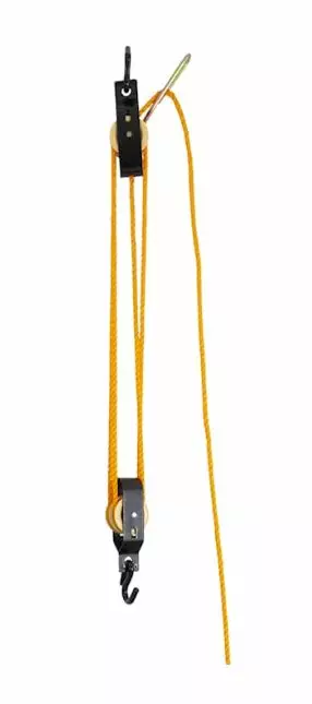 Talja automaattisella lukituksella. Helpottaa esimerkiksi ruhon nostamista ylös nylkemistä varten.