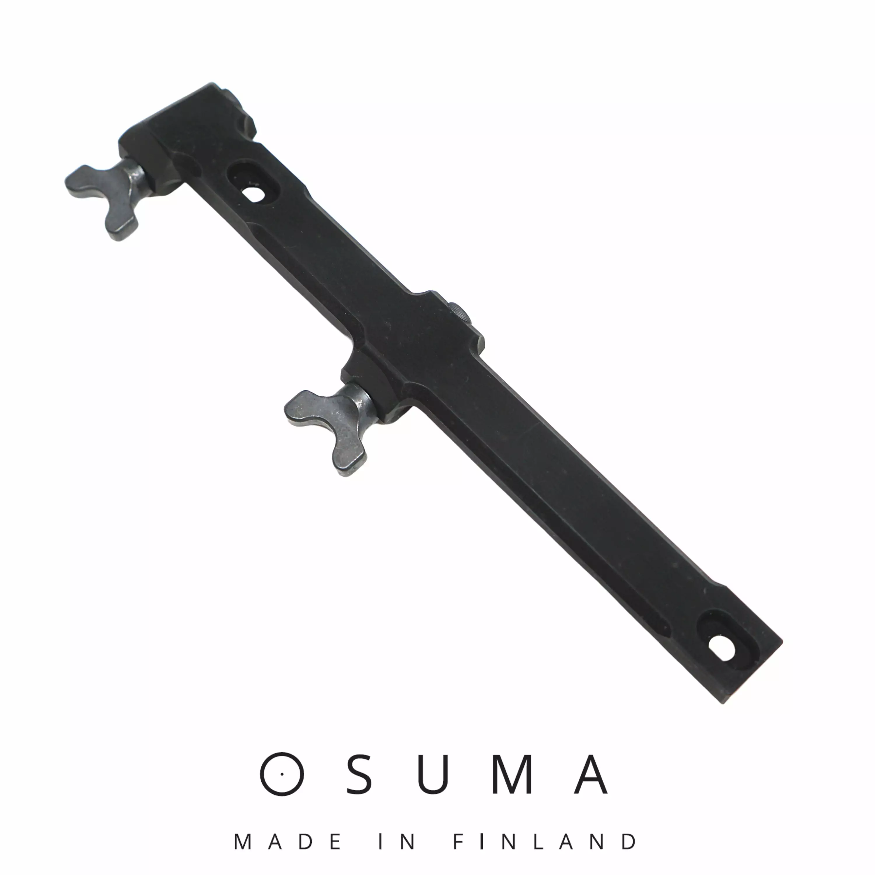 Erikoispitkä jalustaerikoisasennuksiin. Jalusta on optimoitu ATN X-Sight 4K tähtäimelle. 30mm korkeat renkaat. Etummaisen renkaan kannessa on Picatinny-kiila 90 asteen kulmassa lampun kiinnittämistä varten. Kuten kaikki Osuma-tuotteet on tämäkin tuote muotoiltu tarkoin ja testejä on tehty sekä radalla, että maastossa.