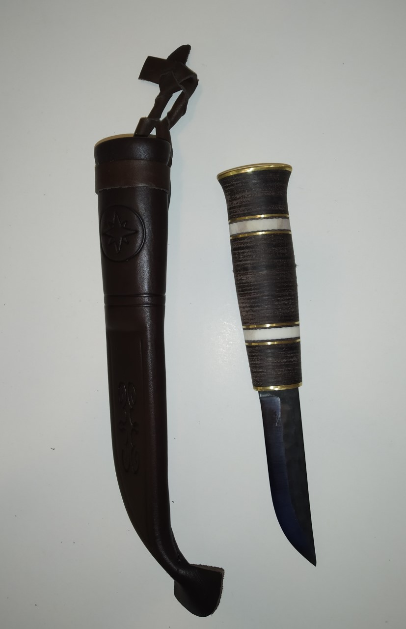 Eräpuun nahkatako puukossa on nimensä mukaan nahkaa valtaosa kahvasta. Puukossa on 95mm pitkä hiiliteräs terä.
