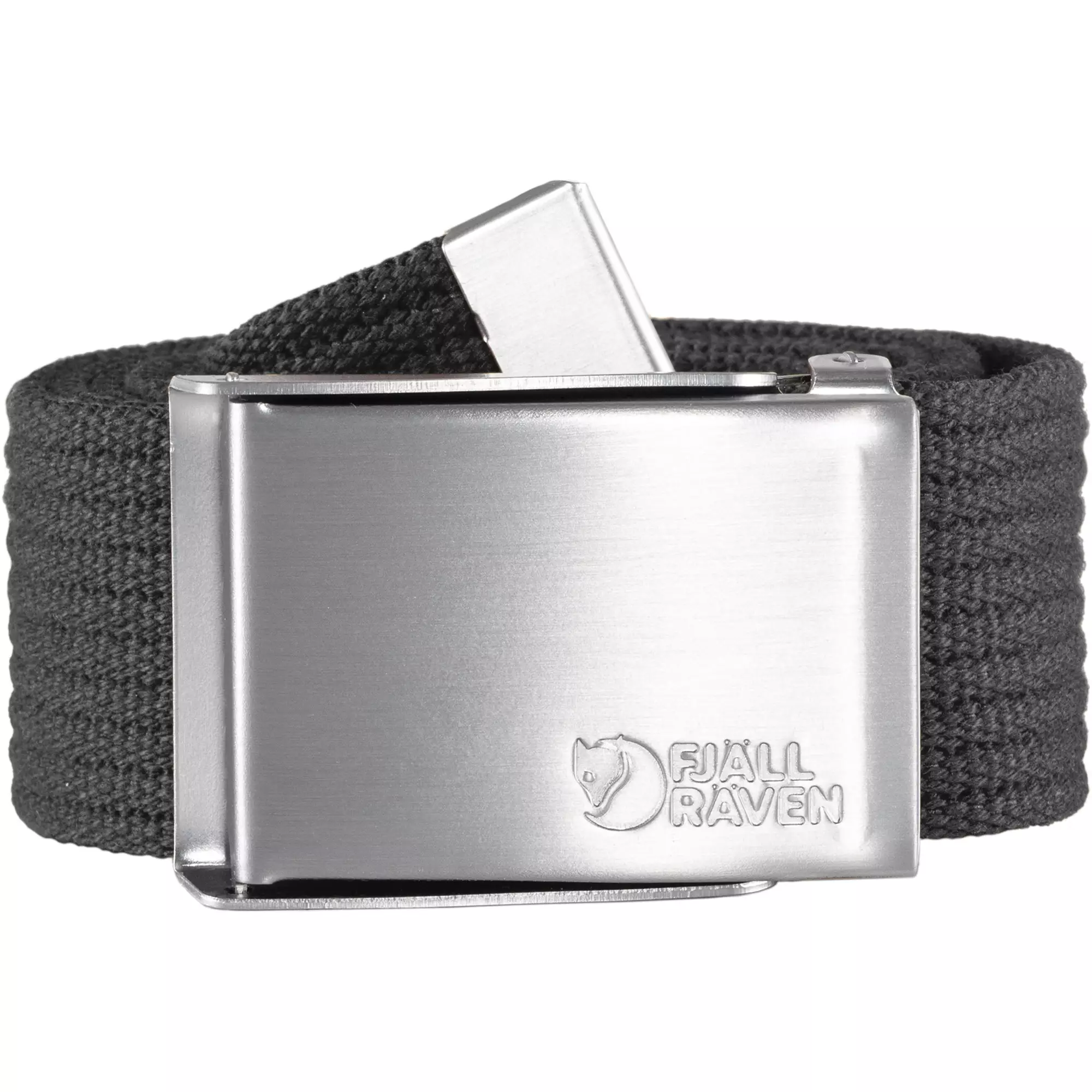 Canvas-vyö. Säädettävä pituus ja metallinen niin kutsuttu "armeijasolki".