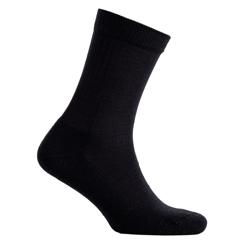 Jos jalkasi ovat usein nihkeän kosteat sekä kylmällä että kuumalla säällä, suosittelemme valitsemaan merinovillaiset sukat. Merinovilla lämmittää kylmällä ja viilentää kuumalla, mutta joka säällä sen kosteudensiirtokyky on erinomainen, jolloin nihkeä tuntu iholta poistuu tehokkaasti. Jos haluat tehostaa kuivuuden tunnetta jalassasi, pue ihoa vasten täyssynteettinen, ohut urheilusukka ja sen päälle merinovillaa. Tuplasukkamenetelmällä minimoit hiertymien riskit, kun hiertävä liike siirtyy ihon ja sukan välistä kahden sukan väliseksi! Vinkki! Hikinenkään merinovillasukka ei haise antibakteerisuutensa ja nopean kuivumisensa vuoksi. Merinokuitu reagoi hapen kanssa haihduttaen hajumolekyylit – tämä jos jokin on hyödyllinen ominaisuus työsukalle! Froteeneulos sukkienpohjassa, kantapäällä ja kärjessä tuntuu pehmeältä ja lämmittää. Saumaton kärki takaa käyttömukavuuden ja suojaa hiertymiltä.