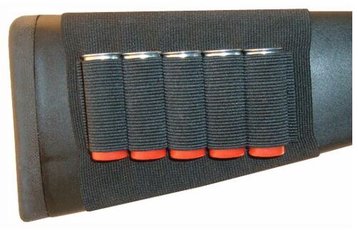 Patruunatasku 5 haulikon patruunalle. Helppo kiinnittää aseen perään joustavan resorivyön ansiosta.