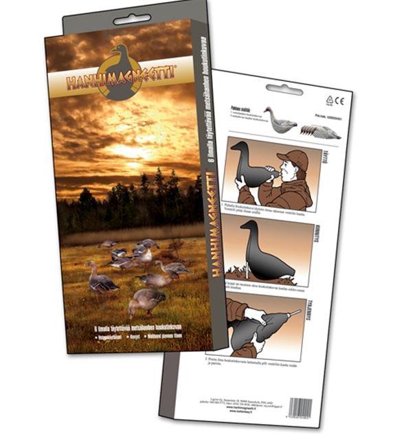 6 kpl ilmalla täytettävää Metsähanhen kuvaa. Pakkaus sisältää yhden vartiohanhen kuvan ja viisi ruokailevan hanhen kuvaa. Houkutuslintu kiinnitetään kaulalla olevasta taskusta tylppäpäisellä keppillä maahan. Mukana täyttöholkki sekä tyhjennyspilli.