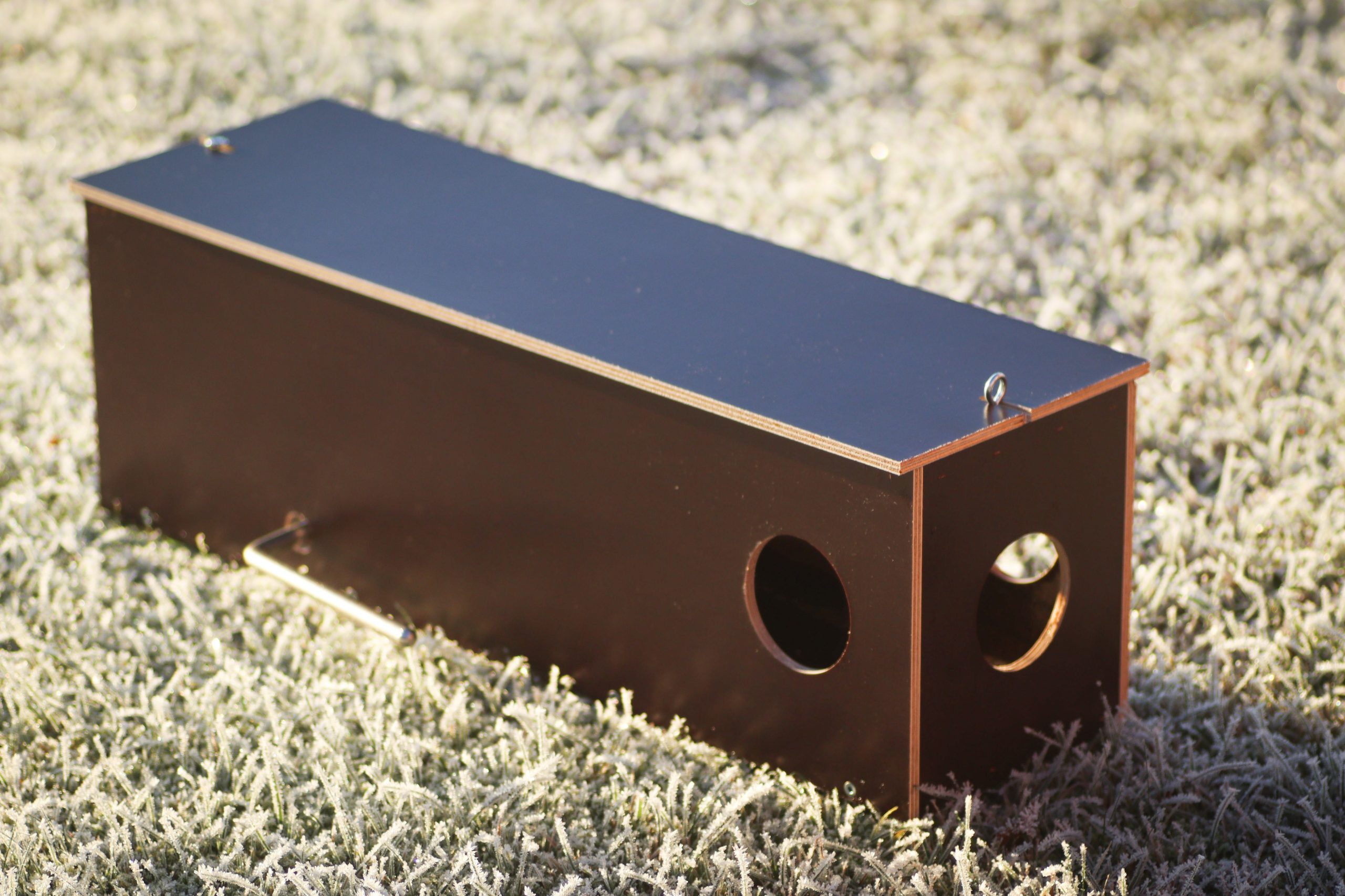 Maailman paras minkkiloukku, missä raudat ruostumattomasta teräksestä! Jalmarin Laatikkorauta on käyttövalmis pienpetopyydys, joka koostuu laatikon sisään rakennetusta hetitappavasta rautamekanismista. Laatikkorauta on erinomainen ratkaisu minkkien, näätien ja suurien rottien pyydystämiseen silloin, kun loukkua ei voi tarkastaa päivittäin. Sen kestävä mekanismi on turvallinen ja helppo virittää laatikon sivussa olevaa kampea kääntämällä. Tehty Suomessa!