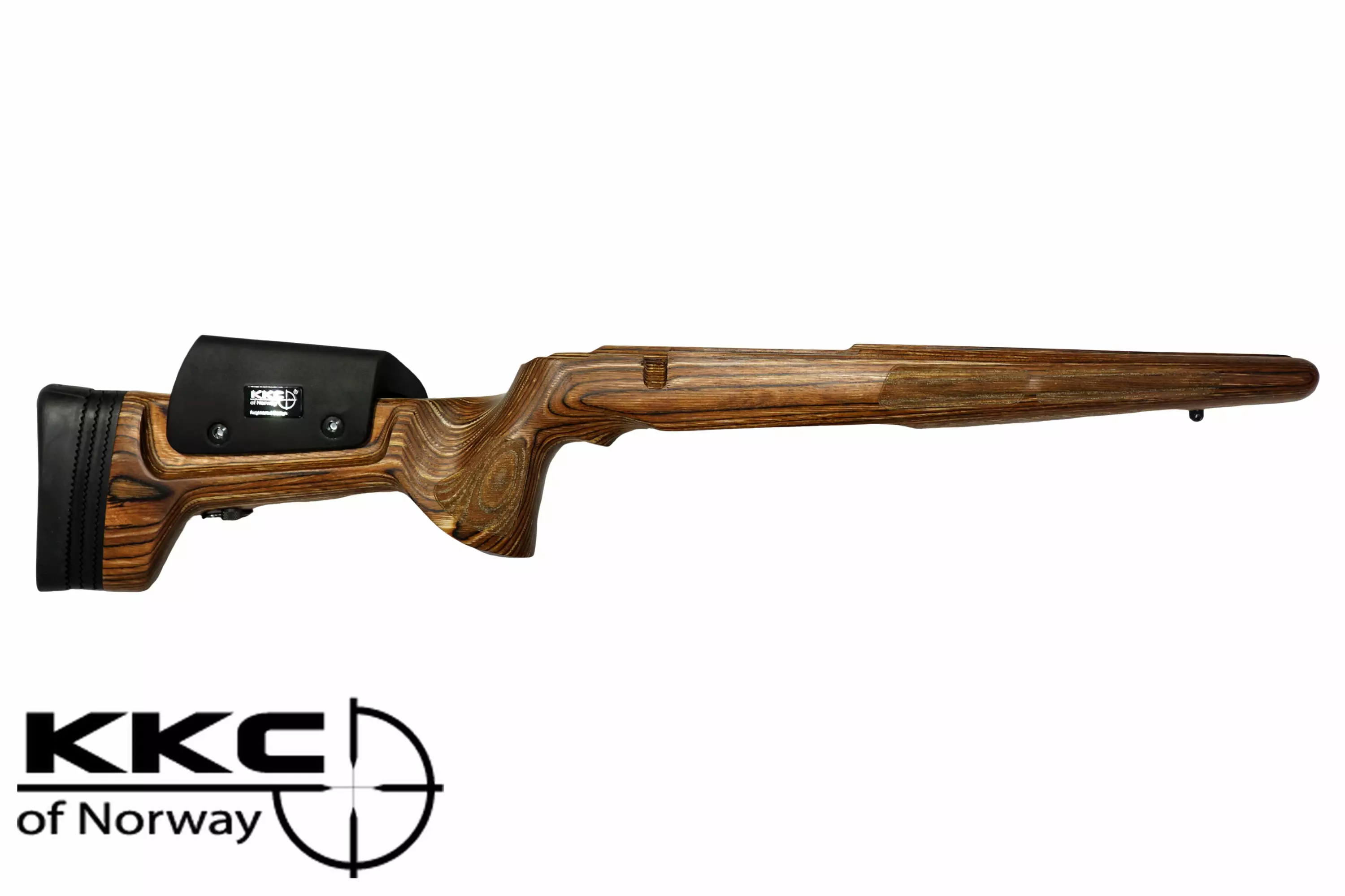 Materiaali: KKC tukki on valmistettu laminoidusta koivusta. Materiaali on lähes elämätön, joten lämpö/kosteusolosuhteet ei pääse vaikuttamaan. Läpivärjäyksen ansiosta esim. piippukourua pystyy työstämään ja öljyämisen jälkeen pinta on aivan saman värinen, kuin uutena. KKC tukki on käsitelty pellavansiemenöljyllä. Sen pinta on miellyttävä sekä sitä on helppo ylläpitää KKC Stock Oil:lla. Laminaatin ominaisuudet yhdessä muotoilun kanssa tekevät KKC tukista erittäin vahvan ja stabiilin tukin.