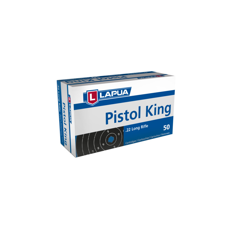 Lapua .22 LR Pistol King -pienoiskiväärinpatruuna kilpailukäyttöön pistoolilajeihin.