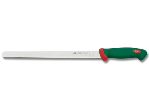 -Sanelli Intended Salmon Knife. -Erityisesti lohikalojen fileointiin tarkoitettu veitsi. -Terä 31cm. -Hyvä leikkausteho. -Pitkä kestoikä. -Runsaasti teroitusvaraa. -Kumimainen pitävä kahva. -Suositellaan käsinpesua.