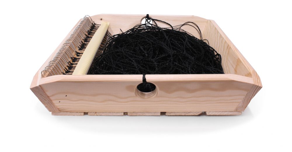 Infoa: laatikko haapapuuta, mitat 42x30 cm, syvyys 70 mm, ritiläpohja. selkäsiima palmikoitu polyesteri (uppoava), väri musta, halkaisija 1.5 mm ja vetolujuus n. 45 kg. tapsilanka kierretty nailon 210d/18 kyllästetty, väri musta, halkaisija 1.0 mm ja vetolujuus n. 22 kg. koukku Sea Kirby niklattu kirkas, sivuväärä, lenkillinen, koko 11 = 1/0, pituus 30 mm, ø 1.2 mm, taivutuslujuus n. 7 kg.