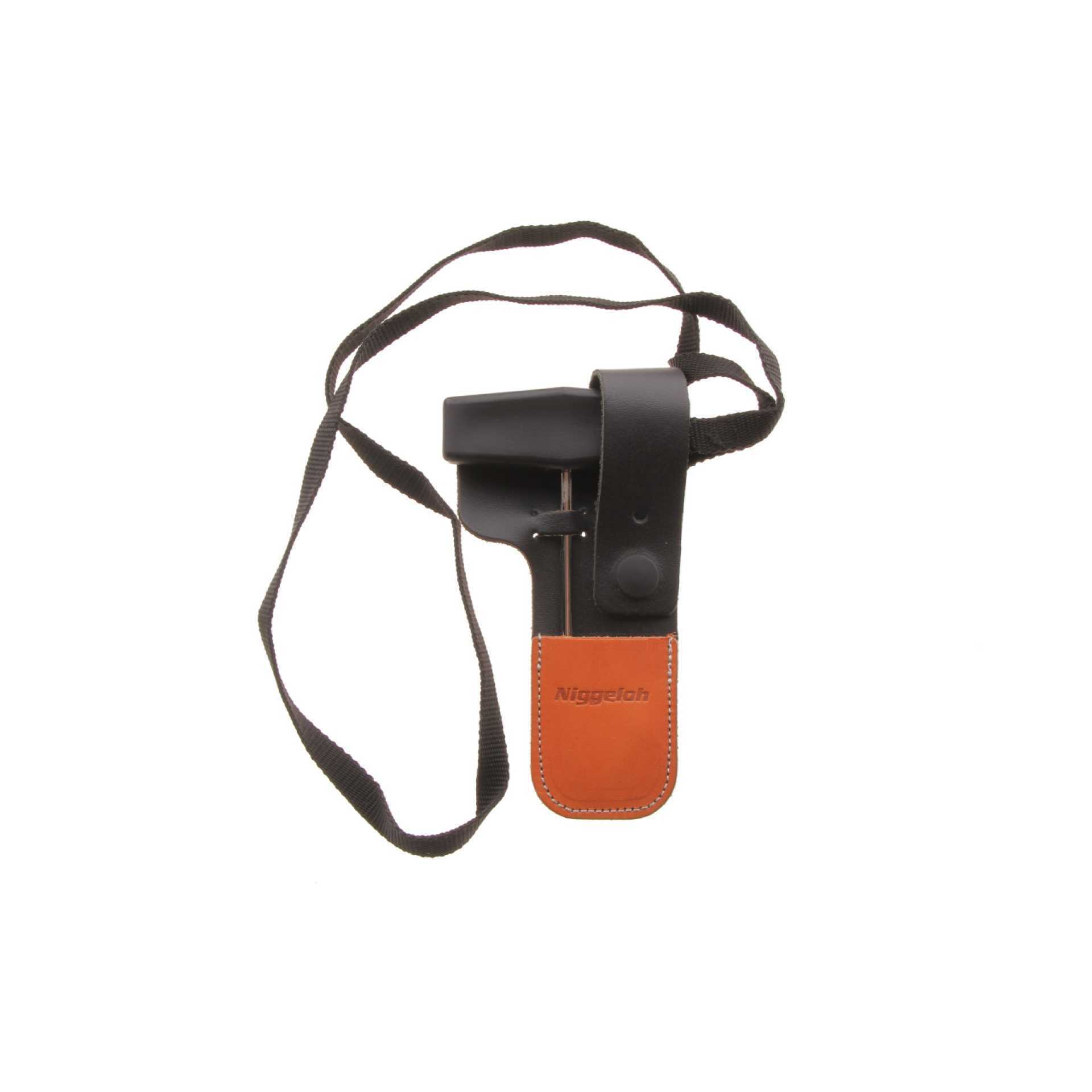 Pienemmän riistan vetämiseen soveltuva koukku nahkakotelossa.