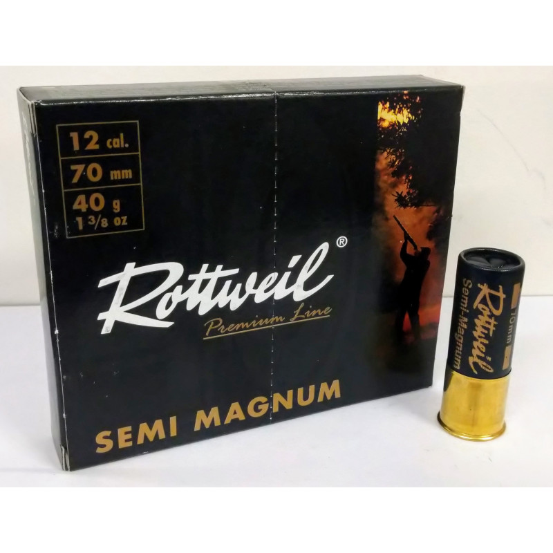 Rottweil Semi Magnum - Tiivis peitto normaali haulikoilla Tämä Semi Magnum patruuna on kehitetty tarjoamaan niille metsästäjille joiden haulikko on vakiopainekoestettu ja joiden patruunapesä on 70 mm, raskaampi lataus.