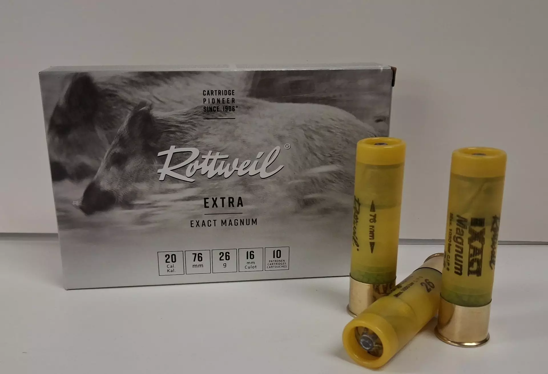 Rottweil EXACT Magnum - Enemmän suorituskykyä, enemmän energiaa Rottweil Exactin eri Magnum versiot siirtävät enemmän energiaa ja pysäytysvoimaa riistaan, kuten villisika, suuremmalla nopeudellaan pienemmällä ennakolla ja harvemmilla ohilaukauksilla – etenkin ajojahdeissa. Vain Magnum hyväksyttyihin aseisiin.