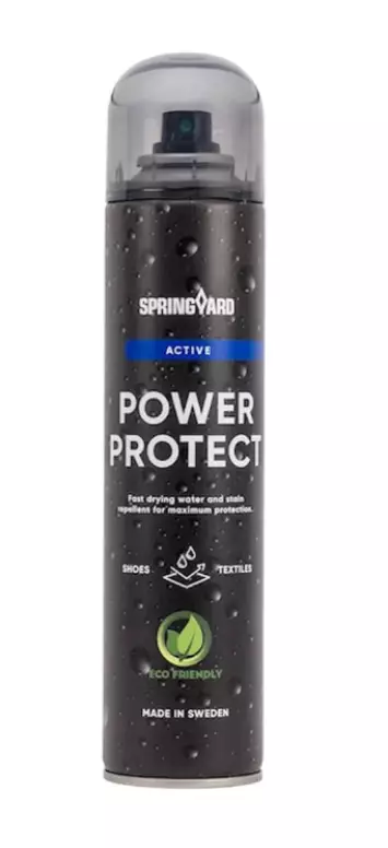 Springyard Active Power Protect -kyllästyssuihke suojaa kenkiä ja vaatteita sateelta ja kosteudelta. Suihke kuivuu nopeasti ja suojaa materiaaleja heikentämättä niiden hengittävyyttä. Suojasuihke sopii hyvin esimerkiksi nahalle, mokkanahalle, nupukkinahalle ja synteettisille materiaaleille.